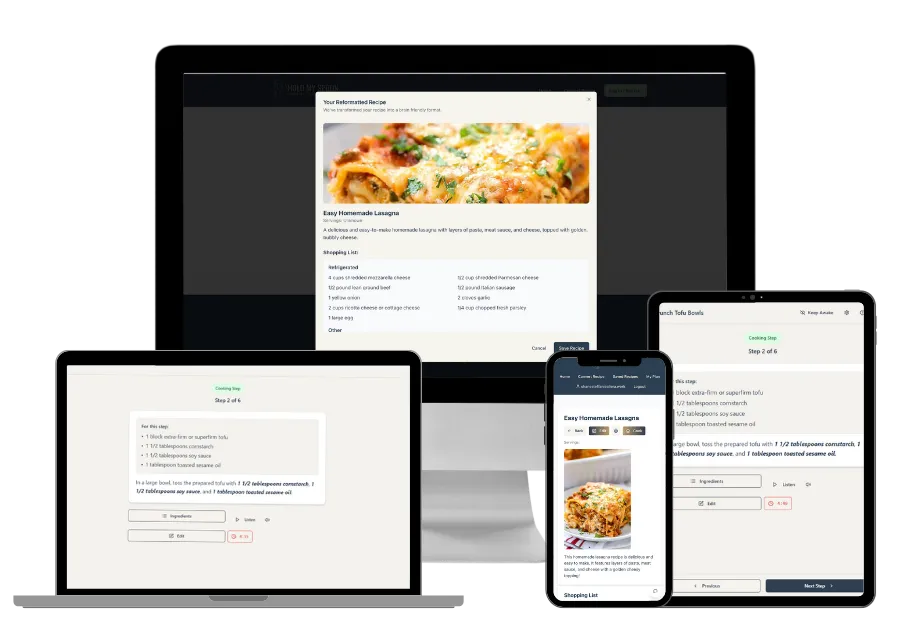 It works with any recipe — text, photo, blog, or PDF — so you can skip the clutter and cook what you actually want.